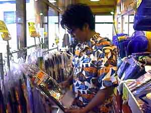 ![]() 峰吉氏が通う釣具店ブンブン北花田店 大手メーカーが名を連ねる大型店だ! 揃えなくてはいけない道具は大きく分けて3つだ! ロッド(竿)… 1.5〜1.8m位の長さのものがバス釣りに適している スピニング用とベイト用の2種類がある リール … 竿と同様スピニングリール(写真)とベイトリールの 2種類に分かれる。 ![]() 初心者はスピニングから始めるといいだろう ライン(釣り糸)は6〜12号専用の物を選ぶ ルアー … これは普通の釣りで言うならば“エサ”みたいなもの 大きく分けて小魚を真似たプラグ系と ミミズ等の虫を真似たソフトジグ系がある 最近ではどこの釣具屋さんでもバスフィッシングコーナーがあり 解らない事があっても女の子ならば店員が必要以上に親切に教えてくれる でも、初心者ならばリールとロッドがセットになったバーゲン品で充分 2000円〜4000円くらいで手に入れることができる 今回はオオマカに道具のことを書いてみたんだけど、 次回はルアーについて詳しく教えよう ただいまバスシーズン真っ只中! 急ぎ足で連載を更新するよ! |