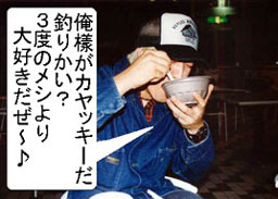 釣りキチ峰吉です! 前回、大好評だった「釣りカルチョ」またやるからね〜♪ 今回はオイラのライバルJIN平は不参加なんだ〜 釣りカルチョ当日、なんやらDIGI-SOAPっていうバンドの レコーディングで唄入れがあって、万全のコンディションで やりたいって連絡があったんだよ〜 まぁ〜その替わりにJIN平の一番弟子を刺客として送ってきたんだ その名も『釣り魔人 カヤッキー』!! オイラは誰が来たって叩きのめしてやるぜ〜!! ![]() ![]() ![]() |