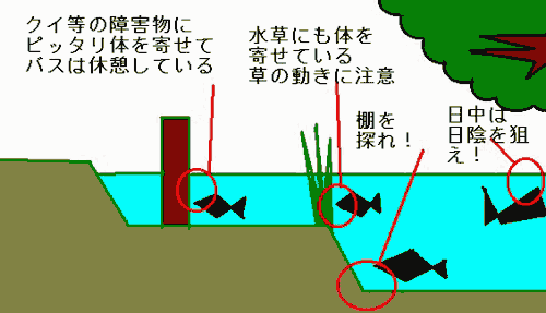 オイラはこの前、釣り仲間のJIN平、カヤッキーと Digi-soapのレコーディングに参加したんだ。 もちろん、その前には釣りに行ってきたよ。 ![]() その時、コーラスで参加する『みつえ』も無理やり 釣りに連れて行ったんだけど、あまりの、朝の早さに 不機嫌で、オイラ達が釣りをやってる間、 ずっと寝ていたよ。 『みつえ』はBOMBERS,シャンテ等のコーラスとして 活躍するミュージシャンで、最近ではホセカルの「南米」 にも参加した、今、もっとも注目されるミュージシャンさ! オイラはまた、無理やり釣りに誘って、音楽以外の楽しさを 彼女に教えてやるつもりさ! ![]() 今回は、釣りをする時のポイント選びについて教えるよ! ちょっと、下の図を参考にしてもらいたいんだけど、 小さな野池では、バスはこんなトコに集中して集まってるよ。 ![]() (1) クイなどの障害物に体をピッタリ寄せている。 (2) 水草の間に体を寄せている。 (3) 木の影などの日陰になっている所。 (4) 水の流れ込みや、棚になってる所。 他にも沢山のポイントがあるんだけど、これは オカッパリ(岸から投げる)の時の一例だよ。 この場所のバスを釣るには、正確なキャスティング(投げる) が必要なんだ!! クイの真横にルアーを落として、ユラユラ沈めると、 リールを巻いたり、アクションを付けたりしなくても バスがパクッと食いついてきたりするんだ! JIN平もカヤッキーもキャスティングは完璧さ! 大きな池なら、バスはベイトフィッシュ(小魚)を求め 回遊する習性があるんで、ベイトフィッシュが群れて 黒く固まってる所に投げても有効的だね。 あと、コイやフナが水面に跳ねている所はやめとこう。 コイやフナが跳ねる音をバスは嫌うからね。 みんなも正確なキャスティングに挑戦してみてよ。 自分の思ったポイント30cm以内に落とせれば まずまず合格だよ。 じゃぁ〜どんどん夜明けが早くなって、釣れる時間も 早くなってきたんで、みんなチャットなんかで 夜更しなんかしないで、早起きして釣りに行こうよ!! |